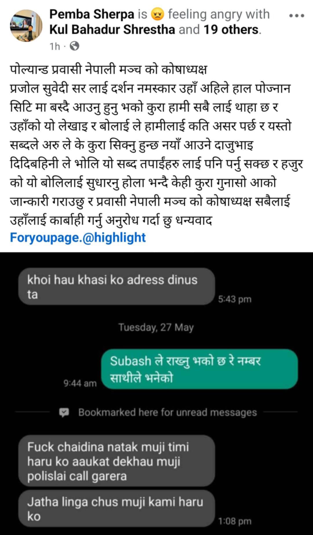 पोल्याण्डमा रहेर टिकटकमा सक्रिय पेम्बा शेर्पाले सामाजिक सञ्जालमार्फत यो विषय सार्वजनिक गरेका थिए।
